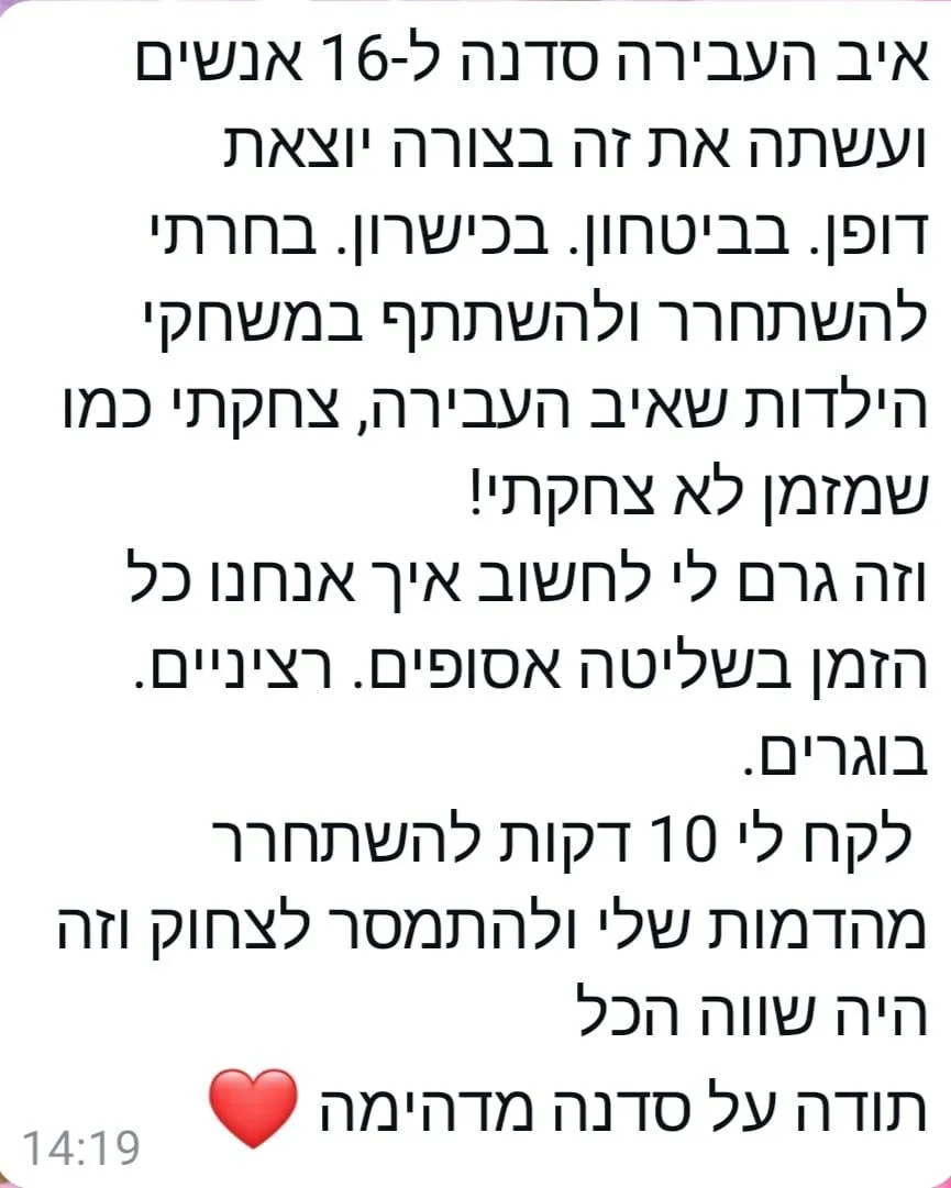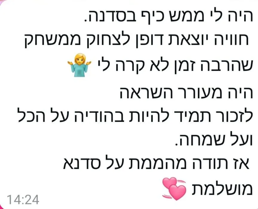 רציתי להגיד תודה רבה על הסדנה הכפית והמהנה!